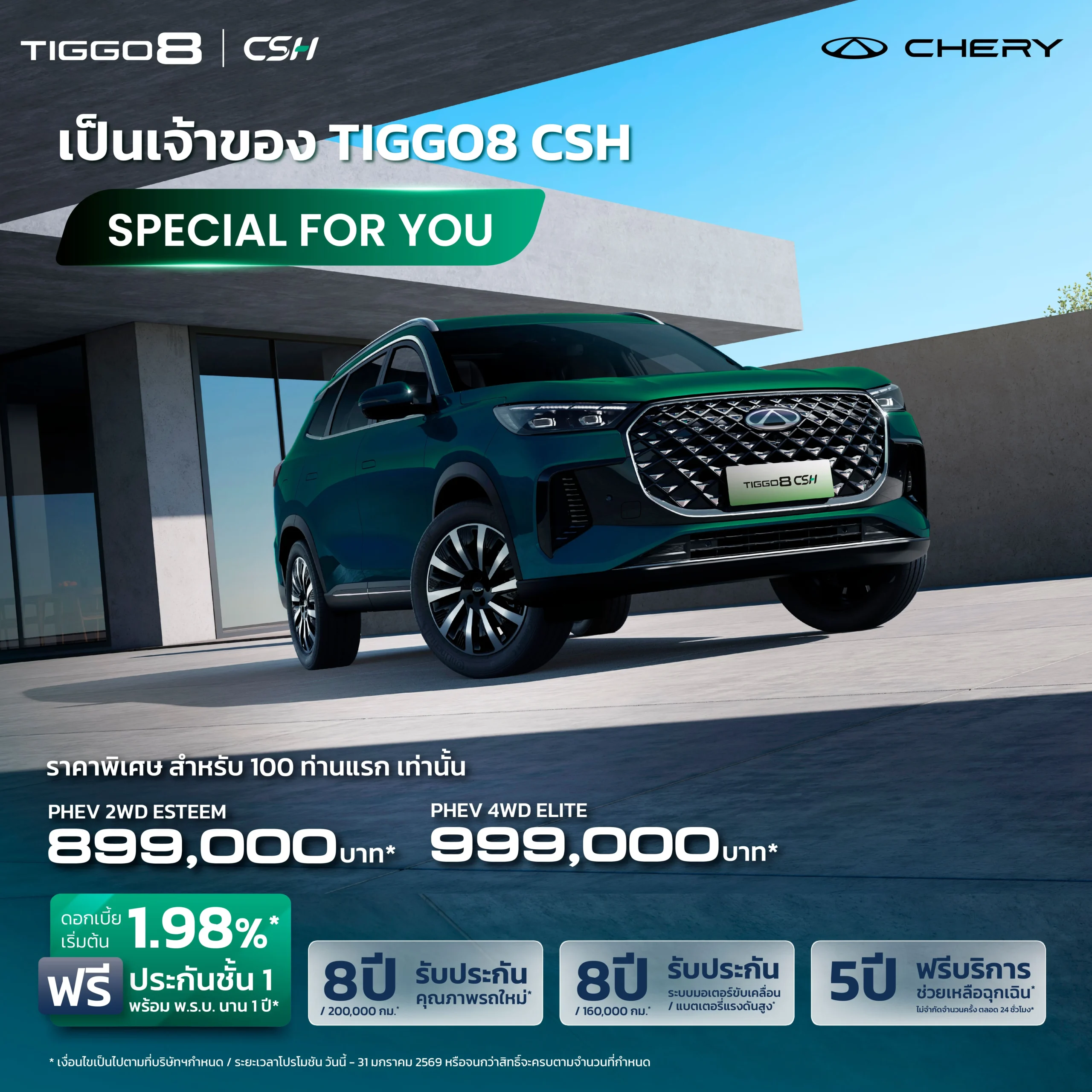 CHERY TIGGO8 รถยนต์ปลั๊กอินไฮบริด SUV 7 ที่นั่ง