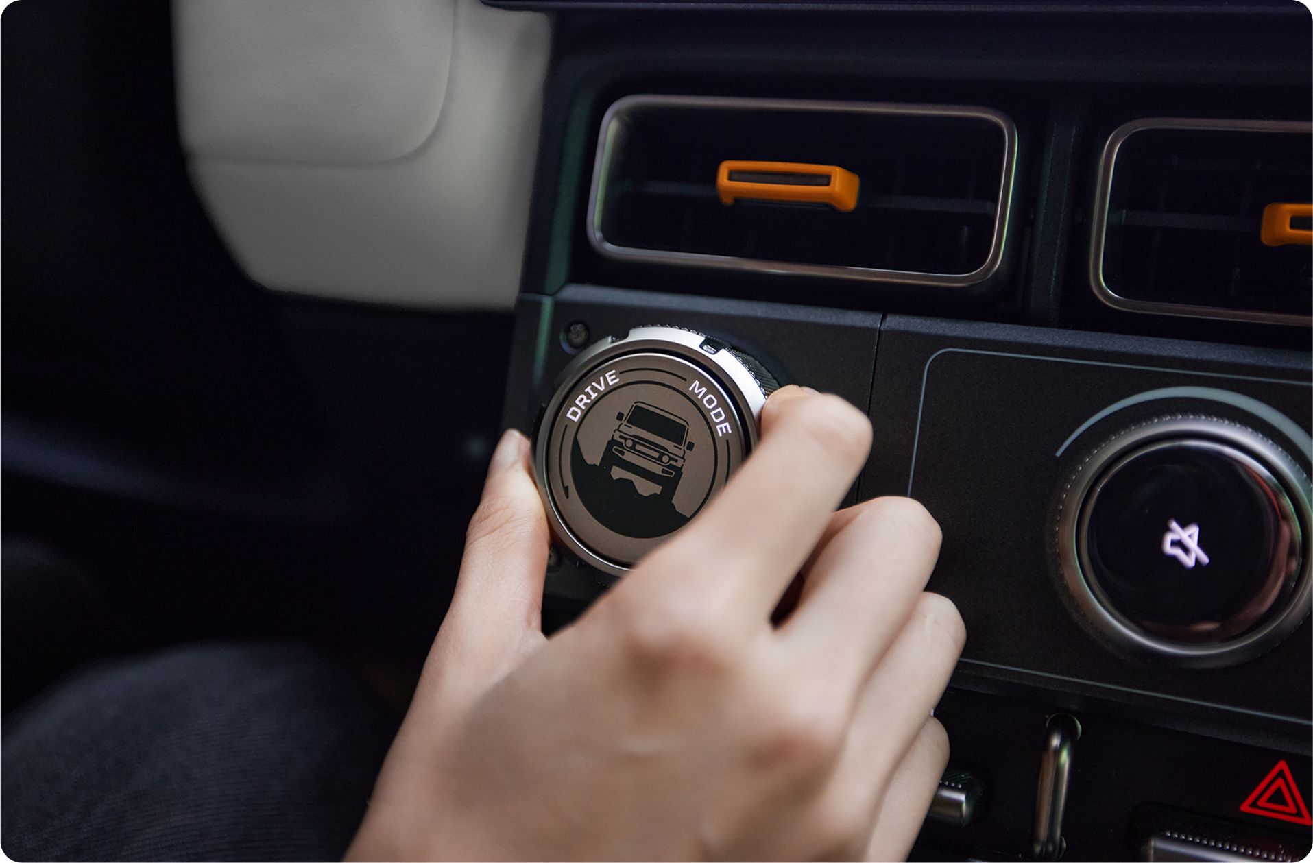 มาพร้อมปุ่มควบคุมการขับขี่ 6 แบบ (ประหยัด ธรรมดา สปอร์ต ถนนลื่น กำหนดเอง และออฟโรด) ปรับอุณหภูมิ ปรับแรงลมและปรับระดับเสียง พร้อมช่องแอร์สีเหลือง โดดเด่นสะดุดตา